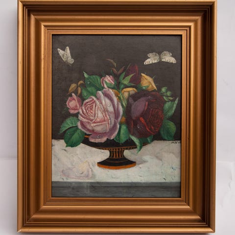 Signeret maleri blomster i vase