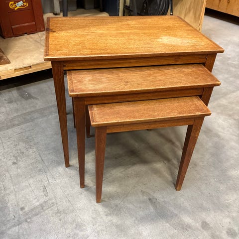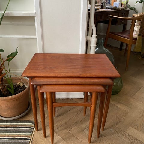 Fint sæt af 3 indskudsborde i teaktræ sælges 🌸