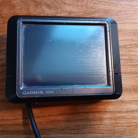 GPS enhed med holder og i stykker oplader (bedst hvis du allerede har et kabel og holder liggende). 30 kr.