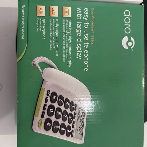 DORO telefon, der er god til ældre mennesker på fx plejehjem. Telefonen kan tages med alle vegne, blot der er en stikkontakt.