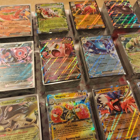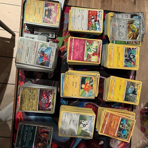 Jeg sælger ud af de kort jeg ikke skal bruge eller have med i mit arbejde i SFO Derfor sælges kortene til en fair pris, alle kan være med på. Alle kort er ÆGTE. Kortene kan bruges som en god start på en pokemon samling, den der vil viderebygge eller lave decks til at spille med. Man får i nogle pakker af bunker Ex eller V kort med som kan være med til at give lidt ekstra til samlingen. En bunke indeholder 30 kort og 5 af dem er glimmerkort. Der er INGEN energikort i bunkerne.
