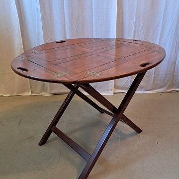 Maritimt skibsbord/sofabord/glasbord/skibsrat i mahogni med glasplade.