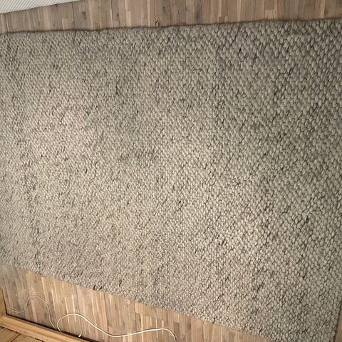 Smukt uldtæppe i akvamaringrøn, 200x290 cm.