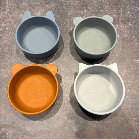 - 4 stk. små silikoneskåle med dyredetaljer