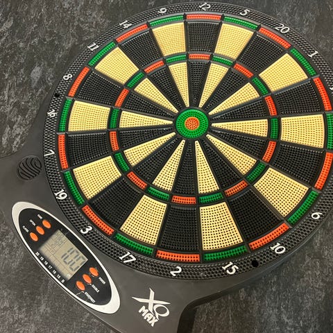XQ Max Elektronisk Dartskive med elektronisk funktionalitet. Dartskiven er designet til indendørs brug og inkluderer flere pile til spillet.