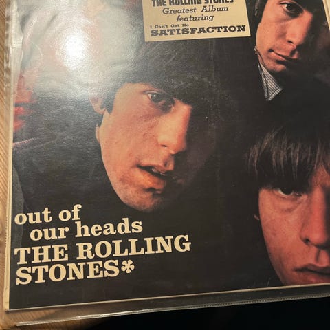The Rolling Stones The Rolling Stones vinylplade med cover. Indeholder musik fra bandet The Rolling Stones. Coveret har billeder af bandmedlemmerne og information på bagsiden.