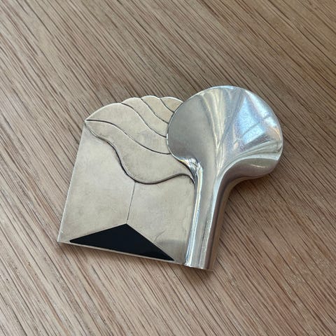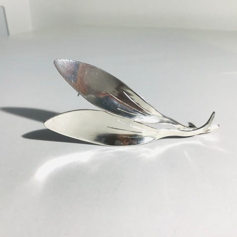 Elegant sølv broche. Springende gazelle. Designet af juveler Chr Veilskov, virksom i Kbh 1963-86. Smuk stand og kvalitet. Måler 7cm x 2cm.