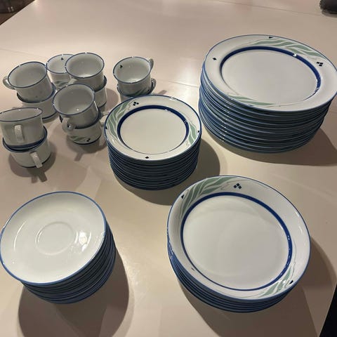 At det hele 11 stk af hver. Kun en har lille afslag. Ægte stentøj i flot kvalitet. Det hele for samlet 2000 kr