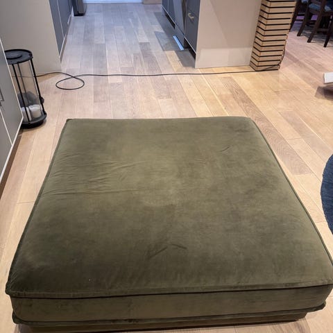 Har en puf i samme betræk i str 100x100 også, der kan købes med.