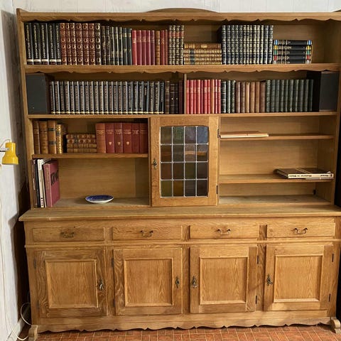 Opbevaringsskab/reol i massivt egetræ med to låger til ophæng på væg. Kan slibes og olieres. Så bliver det meget flot.