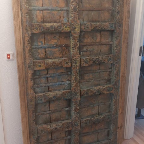 Gammel dør fra kina med jern beslag ...Anvendelse som bordplade, til sofa bord.