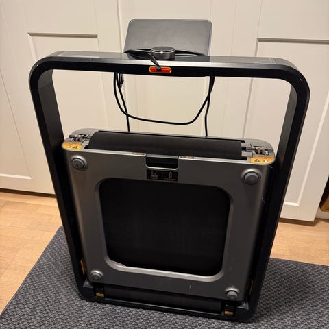 FitNord Treadmill Walking Pad løbebånd i sort farve. Designet til at kunne bruges til gang og let løb, velegnet til hjemmebrug. Kompakt og pladsbesparende model.