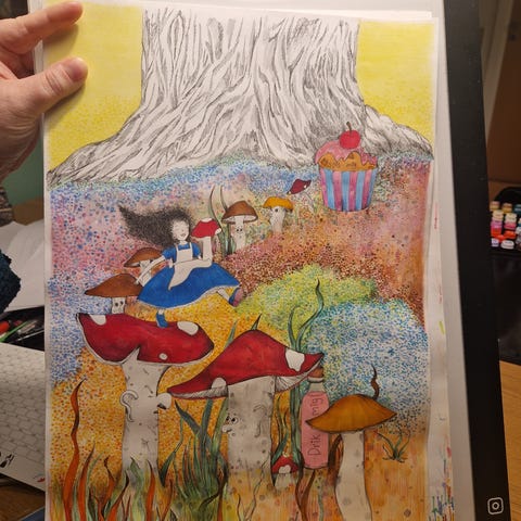 Original håndtegnet illustration af Alice i eventyrland - tegnet af Cecilia Høgagarð
