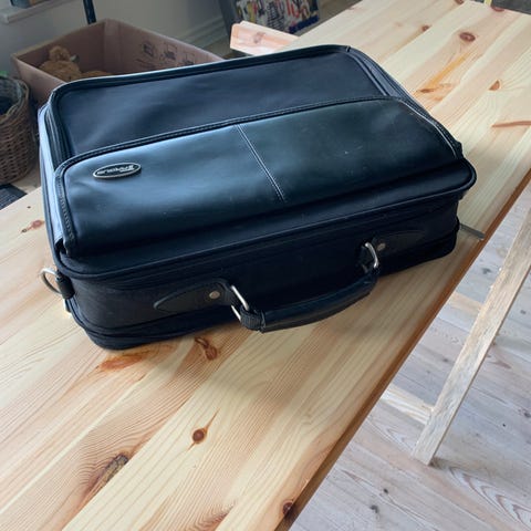 Rummelig arbejdstaske med lås og mange rum. Mindre brugsspor på bagsiden.