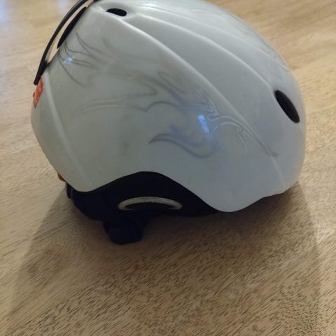 Str. 50-54cm. Justerbar rem og i nakken. Har været brugt af barn på 6-7 år.