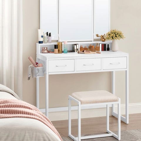 Sminkebord, stol og spejl.