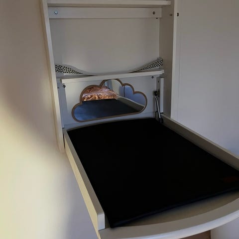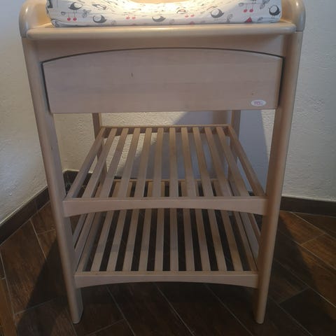 Skønt væghængt puslebord sælges. Det er malet gråt og har et par små pletter indvendigt, men ikke noget der har nogen betydning hvis der ligger en puslemåtte.