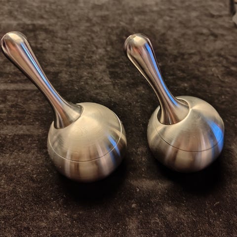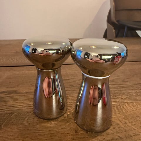 Georg Jensen krydderikværn i rustfrit stål. Krydderikværnen har en cylindrisk form med låg i sort og hvid. Designet til opbevaring og kværning af krydderier i køkkenet. Der er Taget et billede af en ridse der er på den ene. Pris er få dem begge. Sendes hvis modtager betaler fragt.