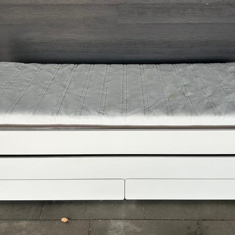 Ikea seng sælges med eller uden madras. Sengen er brugt og har enkelte skrammer (se billede). Fejler intet. Sælges da vores søn er vokset ud af den. Madras er velholdt og har været brugt under topmadras