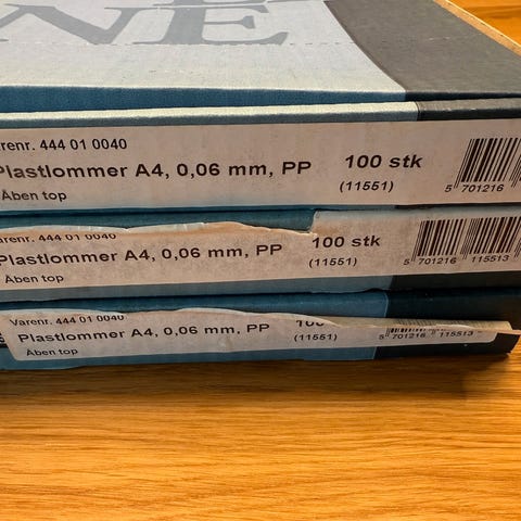 - Klar plast med ringbindshuller i siden: 2stk.