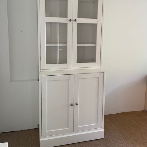 Dobbelt vitrine skab. Kan skilles ad i 4 sektioner. Kan evt. være med på kun at sælge de nederste skabe. Står i rigtig fin stand.