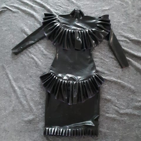 Materialet er latex, og modellen er designet som leggings.