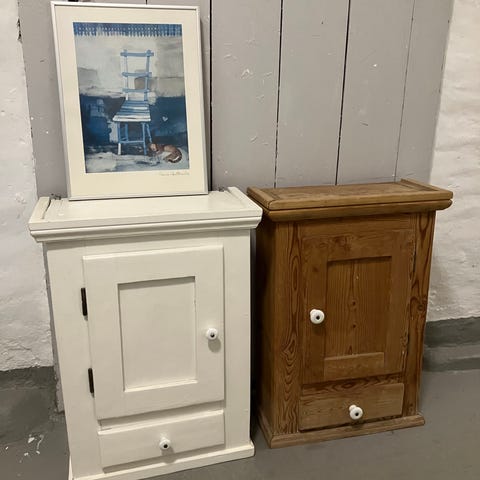 Rigtig fint massivt tobaksskab jeg har arvet fra min morfar virkelig flot håndværk nøgle virker perfekt. Det har 2 smukke gamle glasruder i hver side af skabet