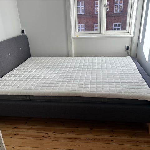 • Madras: En ældre 140 cm madras medfølger gratis, hvis du ønsker det – ellers smider jeg den ud.