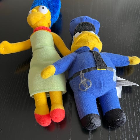Bamse Homer Simpson og Anders And bamser i stofmateriale. Egnet som legetøj til børn.