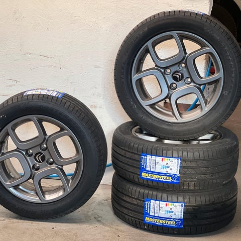 Sommerdæk-kørt få km. Vi har købt heltårsdæk da vi købte vores ny bil i 2025-Citroen C4e