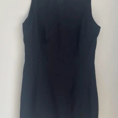 Festkjole i sort, str S. Kjolen har justerbare stropper, et flot fald foren og går lige over bagpå. 20% bomuld og 80% polyester