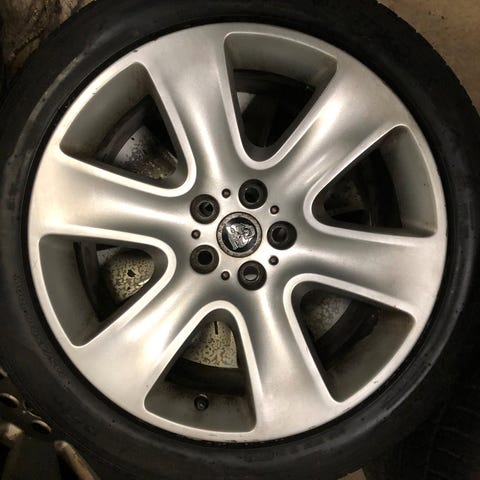 255/60 R18 originale Jaguar fælge, super flotte - monteret med helårsdæk (det er kun fælgene der betales fo, dækkene fejler intet - men alderen er mod dem. Der monteret originale trykfølere på fælgene.
