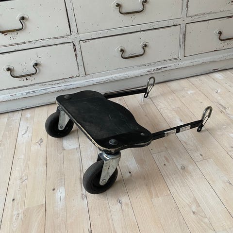 Emmaljunga ståbræt til klapvogn med sort overflade og metalstel. Designet til at monteres på Emmaljunga klapvogne, giver ekstra plads til barnets fødder eller mulighed for et ældre barn at stå under kørslen.