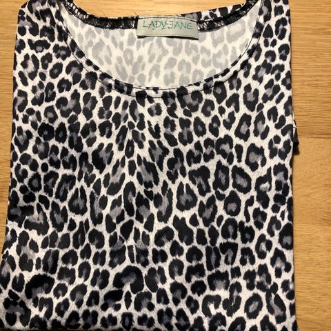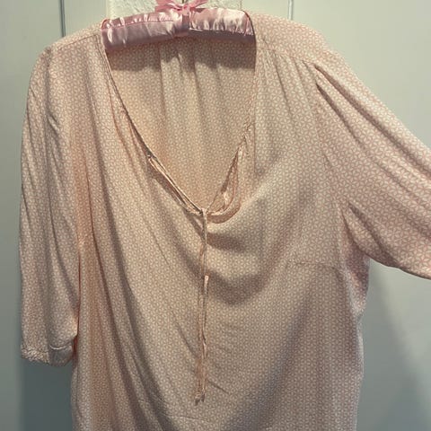 Jane Wood slå-om bluse med yndigt “skinnende” mønster som blade. 100% viscose, i størrelse S.