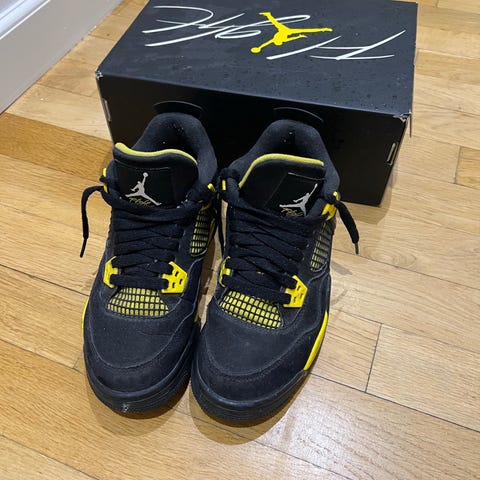 Air Jordan 4 White cement i størrelse 39. Skoene har ikke været brugt.