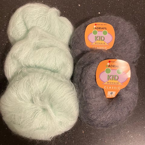 Garnstudio's Kid Alpaca Mohair garn i lys lilla farve. Garnet består af 42% alpaca, 35% kid mohair, 18% uld og 5% nylon. Hver nøgle vejer 50 gram og indeholder 100 meter garn. Anbefalet strikkefasthed er 10 x 10 cm = 17 masker med pinde 5 mm. Garnet kan vaskes ved 30 grader og tørres fladt.