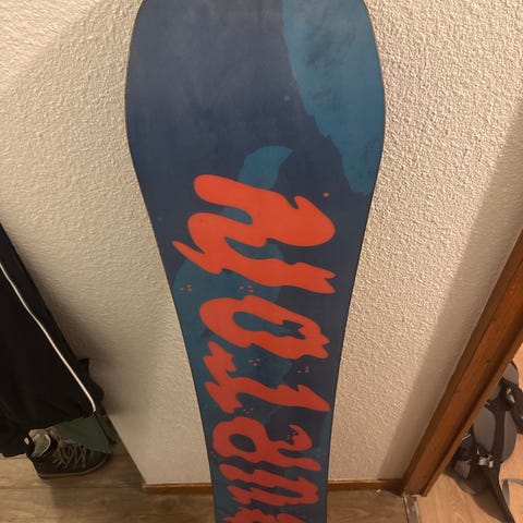 Burton Straight Chuter 155. Kun stået på i 5 dage. Har en bule som er repareret af professionelle i Whistler. Rigtigt godt powder board.