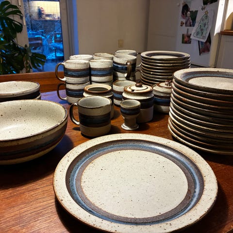Vexø stentøj 18 dele, tallerkner og skåle helt nyt. Kan afhentes i Århus eller Horsens