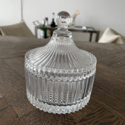 Krystalskål med låg - mærke ukendt men ikke fra ikea