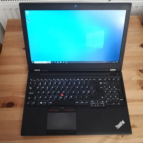 Lenovo ThinkPad P52S bærbar computer med Intel Core i7-8650U CPU, 2x GPU: integreret Intel UHD 620 og dedikeret 2GB nVidia Quadro P500, 24GB RAM, 4K IPS-skærm og Win 11 Pro operativsystem. Bærbar computer i meget god teknisk stand (alle porte og funktioner fungerer rigtig godt) og god visuel stand (få næsten usynlige skærmmærker fra tastaturet, ikke synlige under brug; se foto #3). 2 batterier giver op til 2 timers brug (mulig udveksling snart). 65W USB-C strømforsyning medfølger.