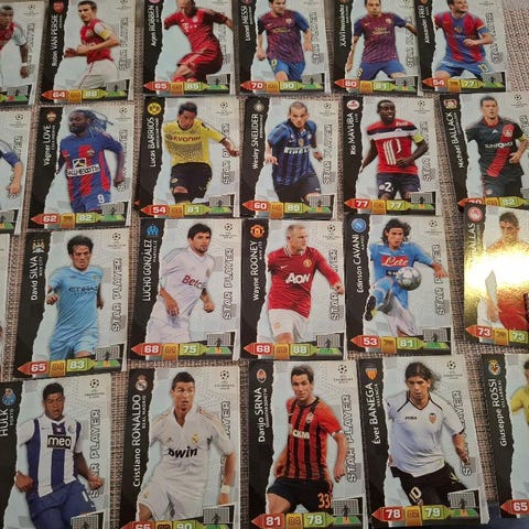 Mappen indeholder hundredvis af kort (ca. 500 stk) i flot stand, herunder masser af stjernespillere fra den gyldne æra i europæisk fodbold.