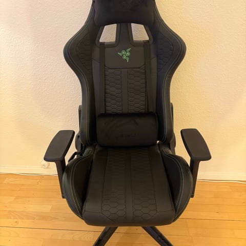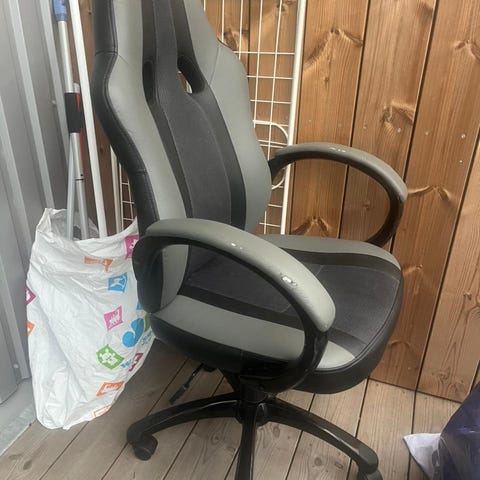 Gaming chair, købt fra Jysk i 2024. Sædehøjde 45-55cm. Kan også give en stoleunderlag med.