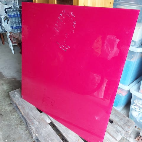 Turkisfarvet opslagstavle i glas inkl 2 magneter. Tavlen måler 45x45cm