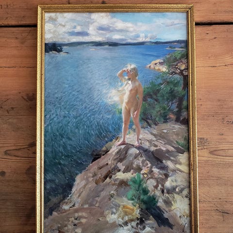 Dette er et gentryk, trykt på 200g syrefrit specialpapir, og sat i en smuk gammel guldramme, med sjæl og patina, renset og med ny bagbeklædning