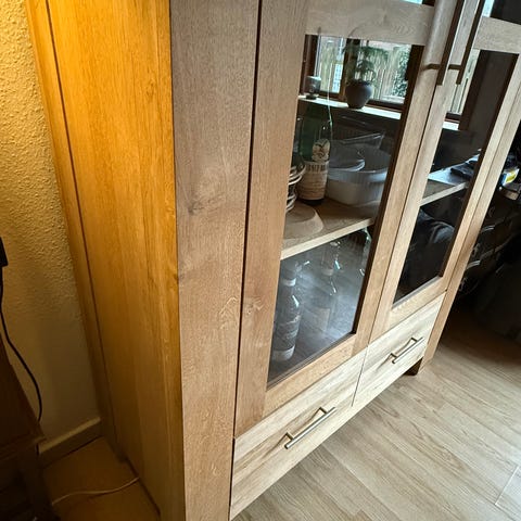 Sort vitrineskab i massivt træ. Flot skab og god opbevaringsplads.
