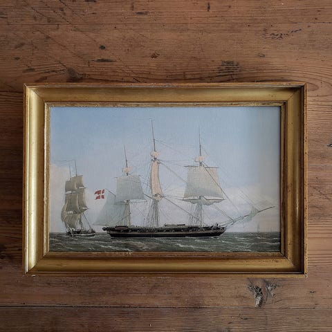 Det er et gentryk, trykt på 200g syrefrit specialpapir, og sat i en smuk gammel guldramme, med sjæl og patina, renset og med ny bagbeklædning