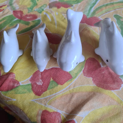 3 stk delfinfigurer, 2 er den samme. Fremstår som nye. Pæne uden fejl/mangler.