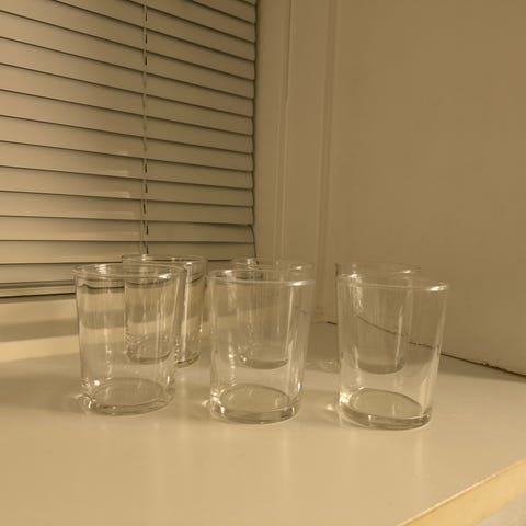 Glassene er høje, gennemsigtige og har en solid bund.