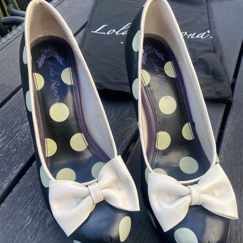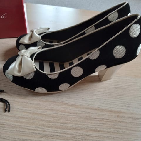 Lola Ramona. Højhælet sko str. 37 sort, hvid og rød