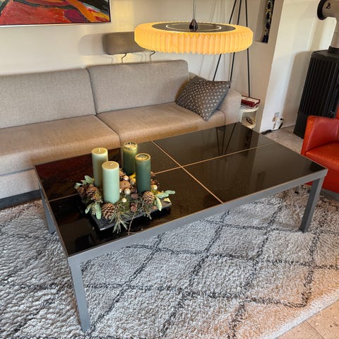 Mål l. 180 B. 80-90 cm. Har ikke præcis mål men kan få dem snart. Sjældent Grant bord fra Italien. Er mega tung og skal ned fra 2 sal. Pladen er uden fejl og ridser og kan ses i Vejle midtby. Bud er velkommen